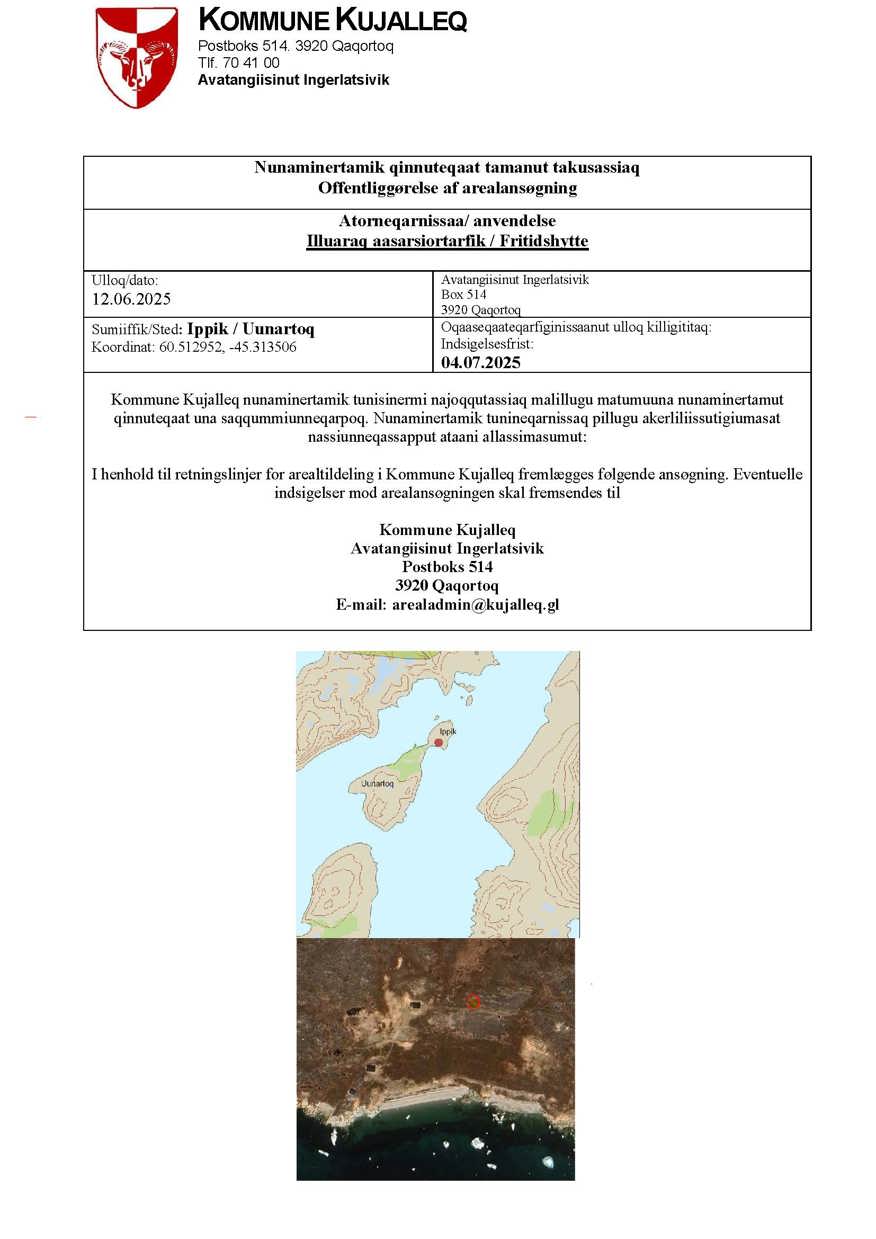 Kommune Kujallermi nunaminertamik tunisinermi najoqqutassiaq malillugu matumuuna nunaminertamut qinnuteqaat una saqqummiunneqarpoq.