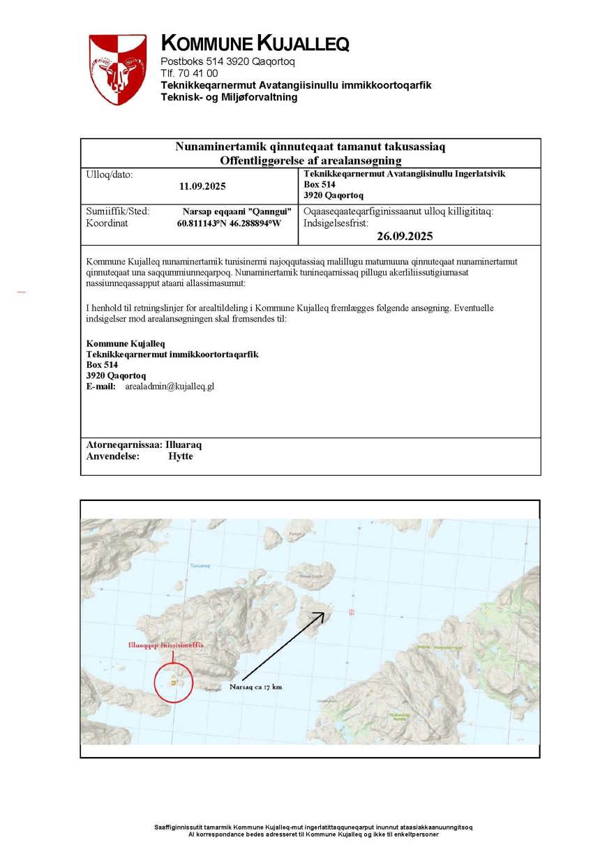 Kommune Kujallermi nunaminertamik tunisinermi najoqqutassiaq malillugu matumuuna nunaminertamut qinnuteqaat una saqqummiunneqarpoq.