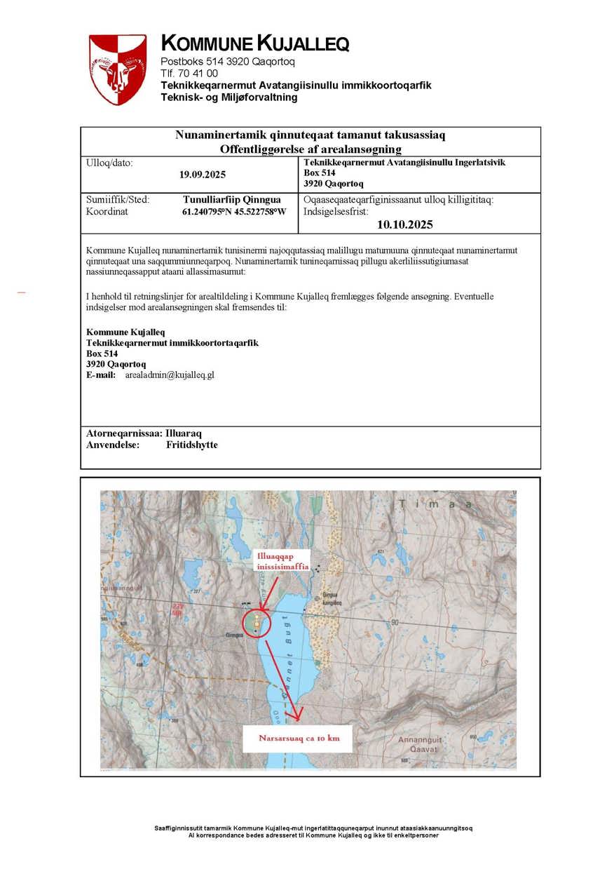 Kommune Kujallermi nunaminertamik tunisinermi najoqqutassiaq malillugu matumuuna nunaminertamut qinnuteqaat una saqqummiunneqarpoq.